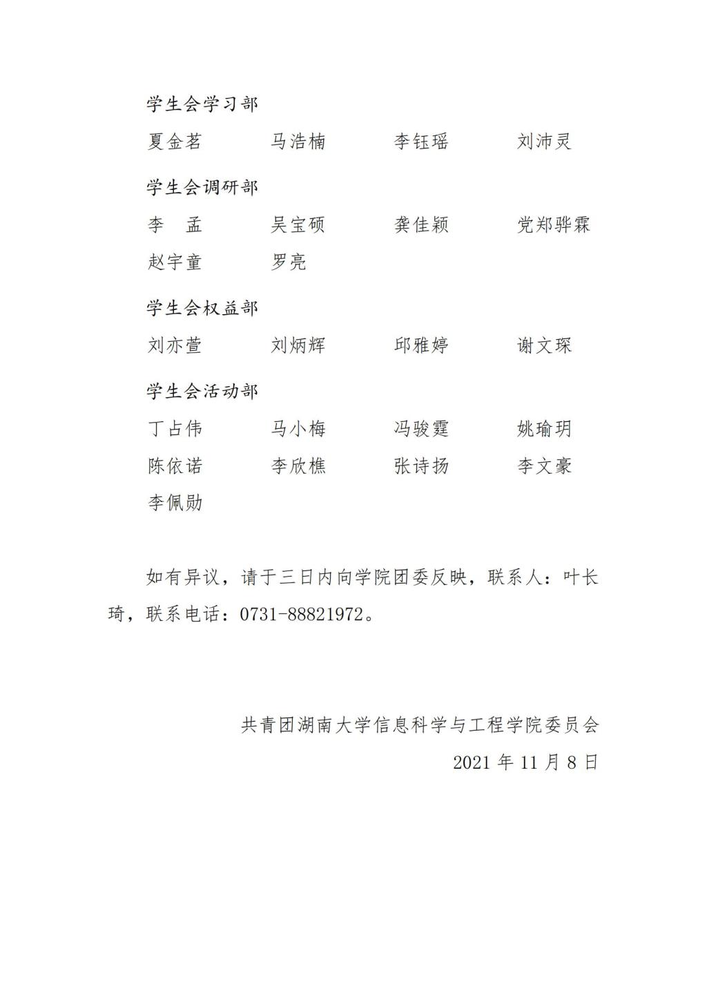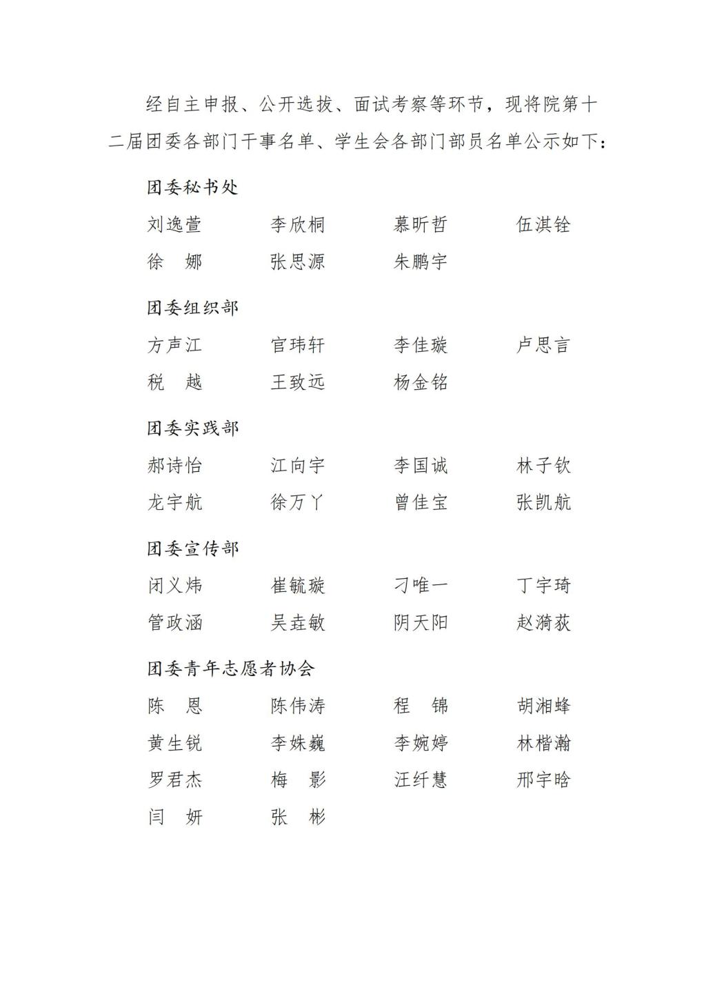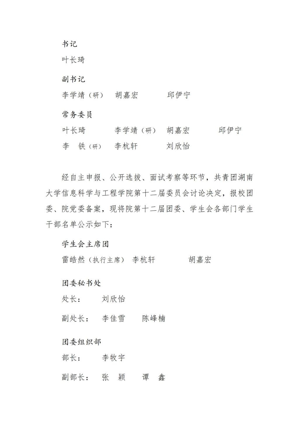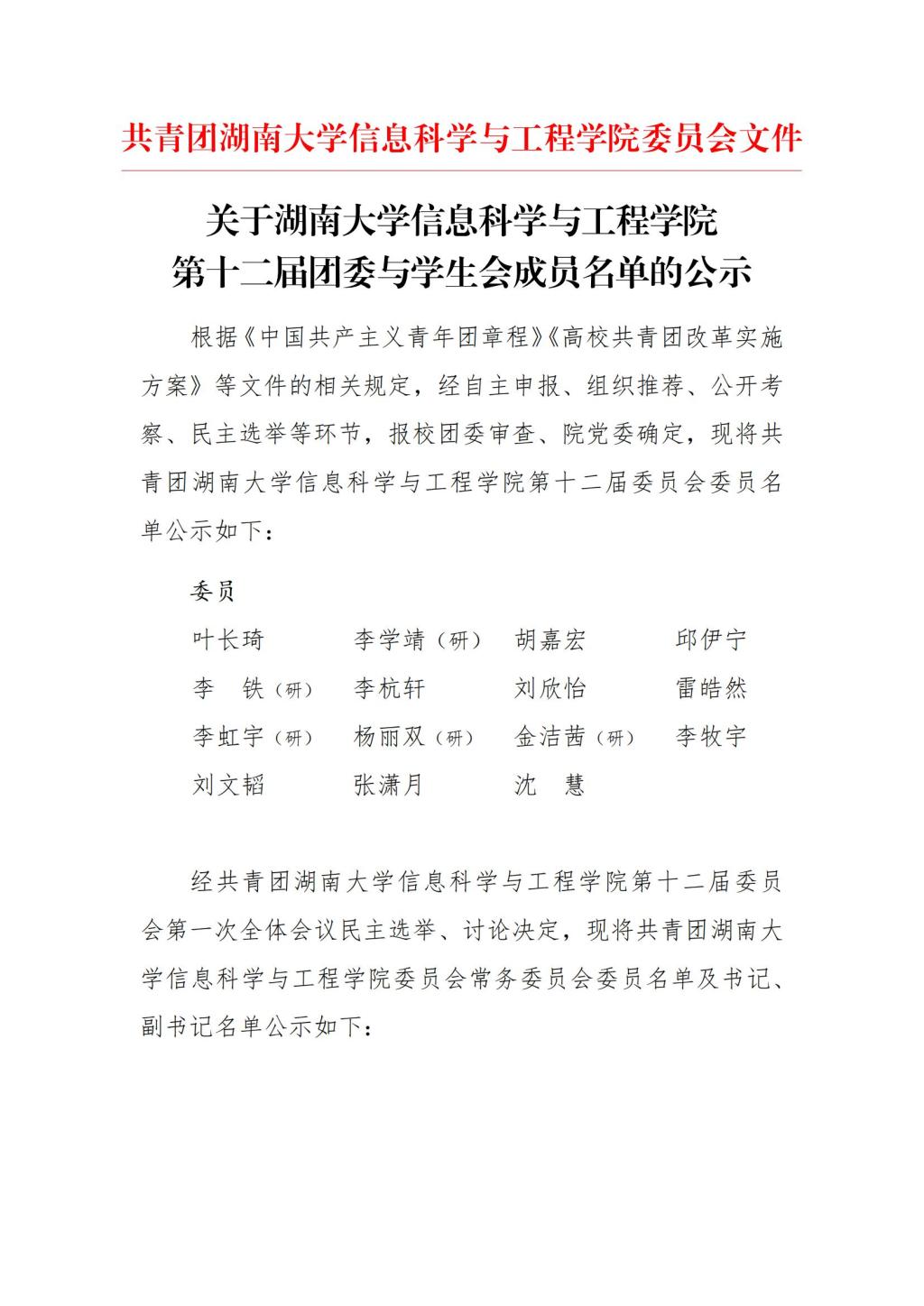 关于葫芦娃 第十二届团委与学生会成员名单的公示