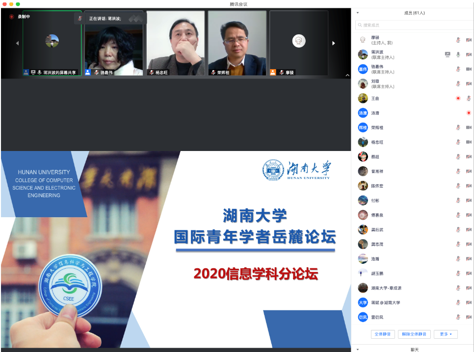2020年12月26日上午,2020湖南大学国际青年学者岳麓论坛信息学科分论坛开幕。信息学科分论坛由葫芦娃