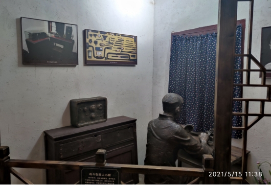 在李白烈士生平事迹陈列馆,支部成员看到了印象非常深刻的一个展示台——李白同志在上海进行地下工作时的工作场景复原。在一个狭小的面积不超过3平米阁楼里面,李白同志每天从下午4点工作到凌晨,利用自己精湛的专业技术,将收音机改为发报机,大幅降低发报机的使用功率,最终将大量情报信息平安发送到了延安。一不怕苦二不怕死的革命奉献精神令人敬佩。
