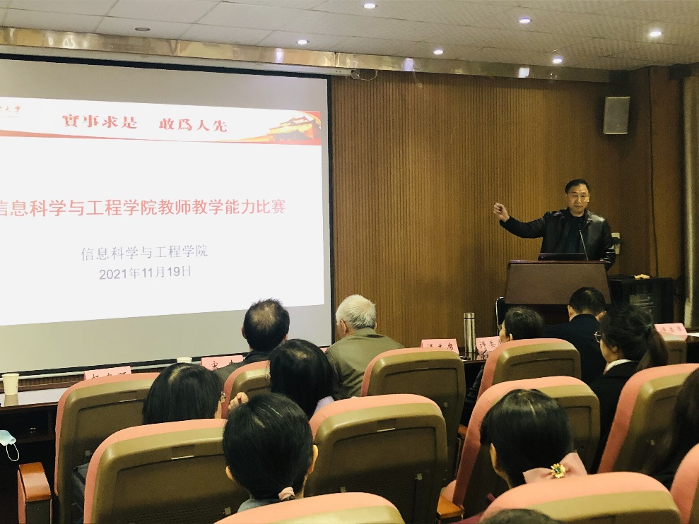 于2021年11月19日举行课程教学竞赛。本次赛事共有12名教师参赛,由5名教学经验丰富的教授专家和学生评委组成评审团。校工会常务副主席宋杰、教务处副处长刘杰、院党委书记杨忠旺及相关院领导出席,学院部分老师到场观摩。