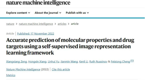 近日,我院李肯立/曾湘祥教授课题组在分子性质与药物靶标预测领域取得重大进展,并在Nature子刊《Nature Machine Intelligence》在线发表题为“Accurate prediction of molecular properties and drug targets using a self-supervised image representation learning framework”的研究论文,该研究提出了一个基于分子图像的无监督深度学习框架——ImageMol。