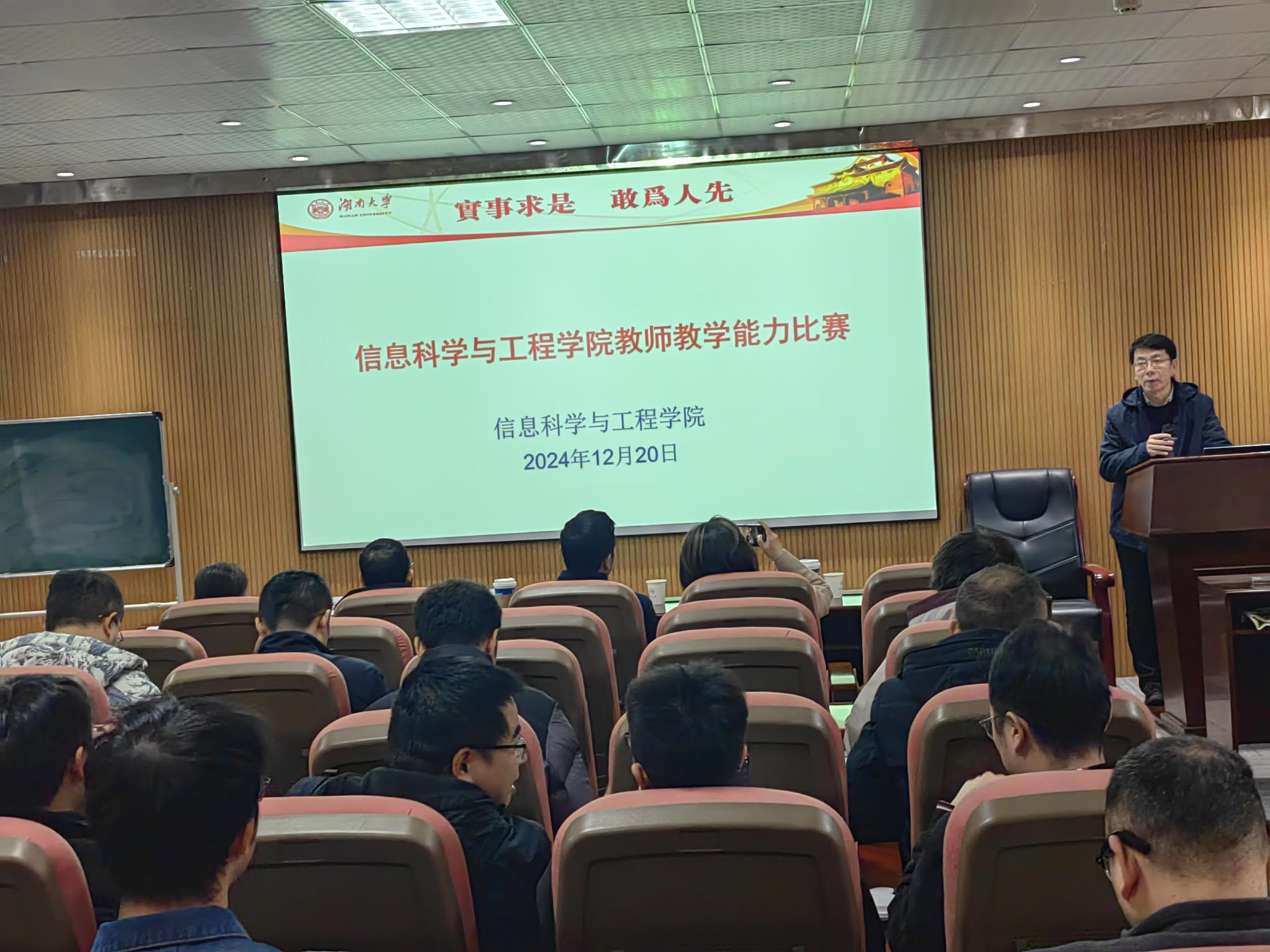 于2024年12月20日举行教师教学能力竞赛。此次教学竞赛包括赛前动员、赛前指导、启动仪式、现场比赛、专家点评、教学研讨沙龙等多个环节,赛事共有9名教师参赛,教务处副处长兼教学质量监控与评价中心主任刘杰及相关院领导受邀出席,比赛由学院副院长罗娟主持,比赛评委由外国语学院副院长、教育部首批课程思政教学名师任远教授及学院教学委员会、督导团教授组成,学院部分老师到场观摩。