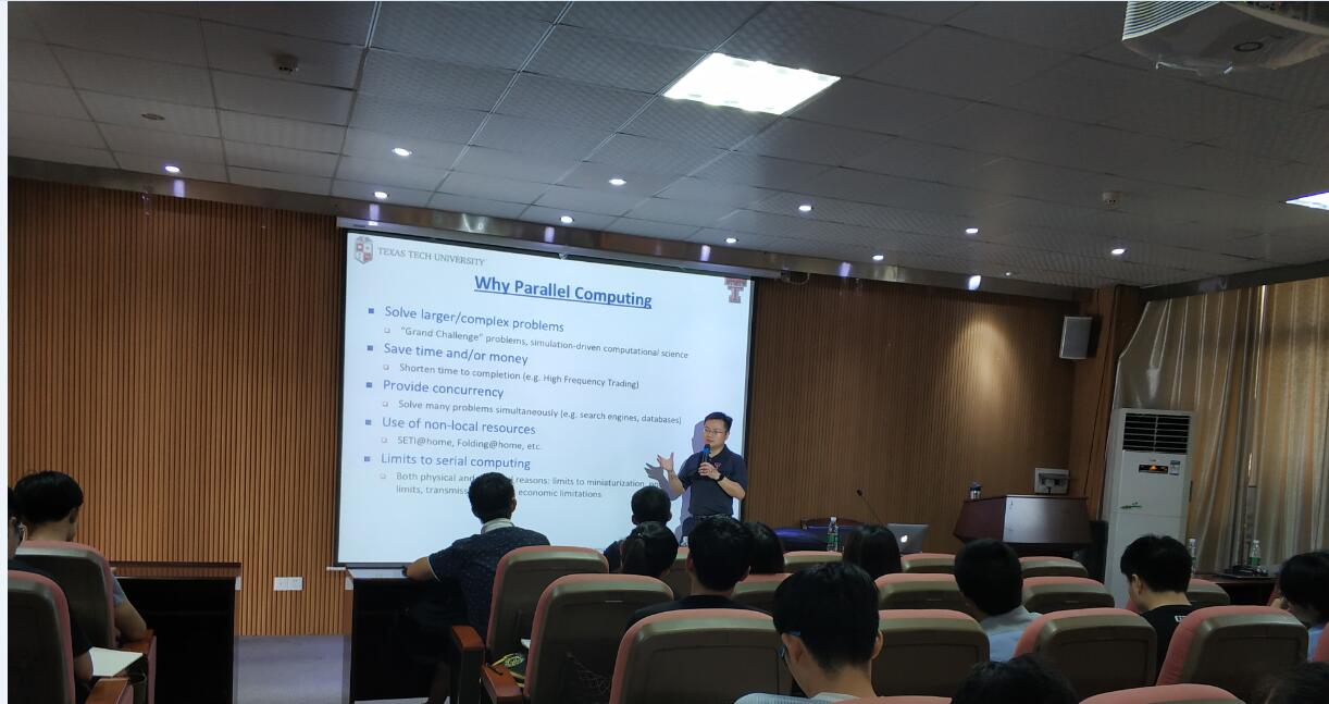 2018年7月9日,学院邀请了德州理工大学计算机科学系博士生导师,陈勇副教授来我院进行为期四天的《并行计算导论》课程讲学,本次讲学于7月12日圆满结束。