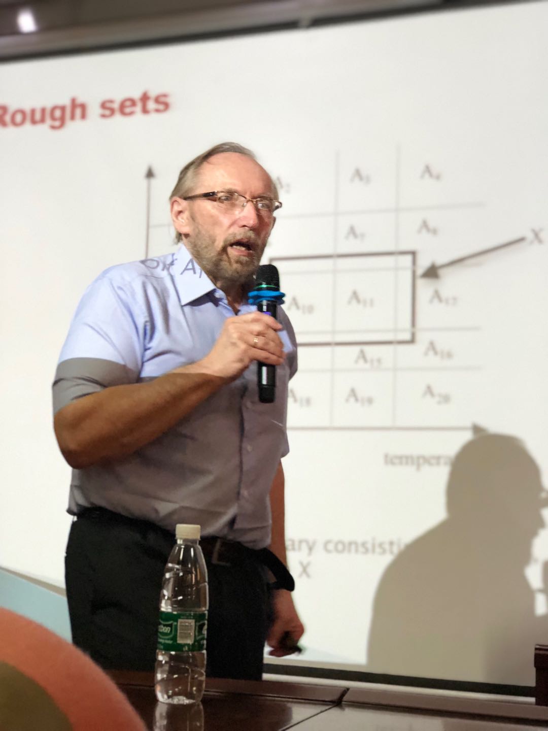 借着2018计算机科学最新进展国际研讨会第二季之时,有幸邀请到加拿大Witold教授,阿尔伯塔大学计算机与信息工程学院学术带头人,在院楼542报告厅给相关专业的老师和同学们做主题为“Granular Computing: Pursuing New Frontiers of Artificial Intelligence”的学术报告。参加报告会的有葫芦娃