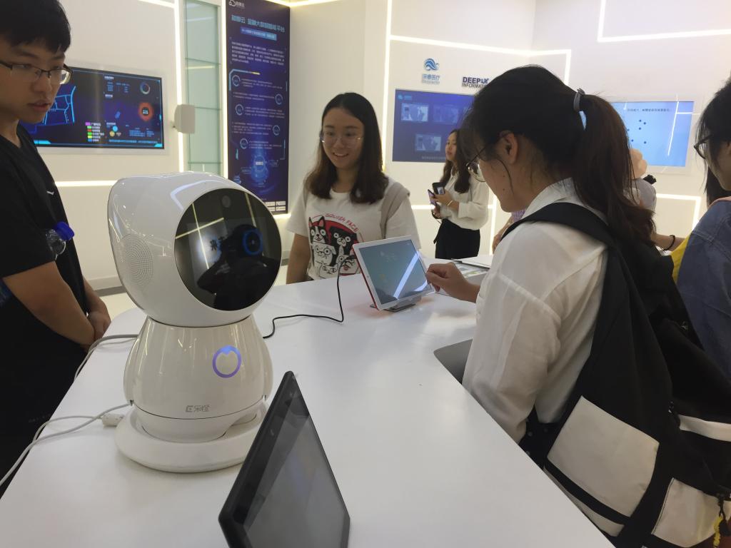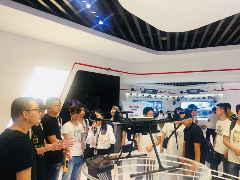 最后一站,未来科技城的人工智能小镇,以人工智能为特色,覆盖大数据、云计算、物联网等业态,集中力量招引机器人、智能可穿戴设备、无人机、虚拟/增强现实、新一代芯片设计研发等领域,浙大·阿里前沿技术研究中心、上海交大John Hopcroft计算机中心、浙江省智能诊疗设备制造业创新中心、中乌人工智能产业中心、北航虚拟现实/增强现实创新研究院、暾澜智慧谷、百度(杭州)创新中心、贝壳社等10个重大平台项目已经达成合作,同学们兴致勃勃地在科技展厅对部分研发展示的新产品进行了演示和体验。