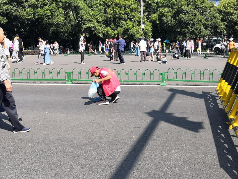 国庆假期,东方红广场的车与游人络绎不绝,为了让游客有一个更干净舒适的环境游玩,我们信息院志愿小分队开始了志愿工作,我们拾着花坛,石板缝隙间的小垃圾,与我们一同工作的还有环卫工人叔叔阿姨,在我们的共同努力下,路面已经没有了可见的垃圾,一个小时的志愿活动,虽然不能改变我们所处的环境的本质,但是我相信通过我们的活动,能让游客看到我们湖大学子的热心真情,能给游客带去一点点帮助,也是一份难得的国庆礼物。