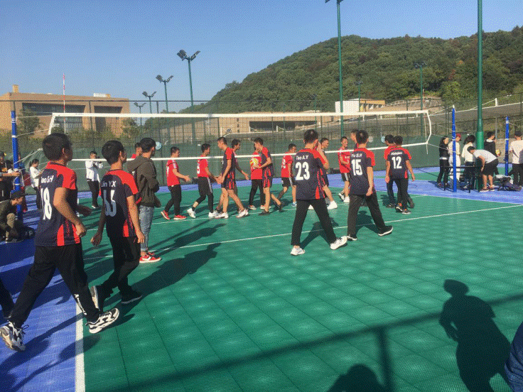 是日,荫马塘排球场在烈日的笼罩下涌出滚滚热浪,场上的气氛也越发紧张起来。面对强大的土木院,信息院的男排勇士们依旧与往常一样热身,相互鼓劲。比赛采取三局两胜制,每局二十五分钟。14:30比赛开始。第一局,信息院在防守的同时注重进攻。随着时间一分一秒的流过,双方的比分差距一步一步拉大,第一场比赛定格在13:21,信息院惜败。