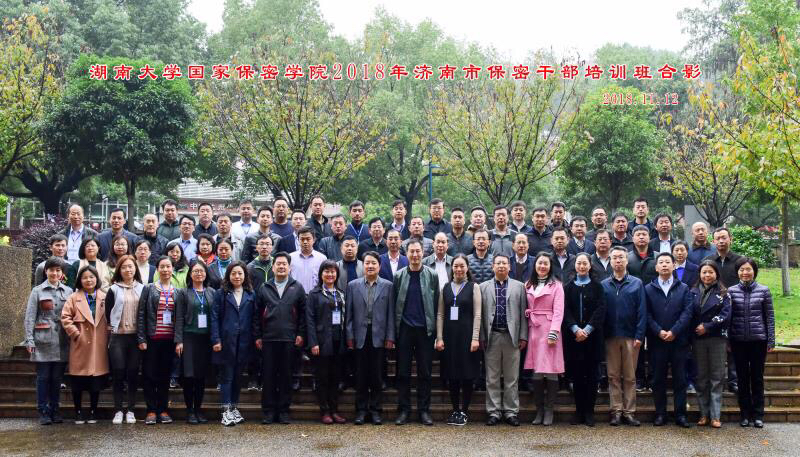 2018年11月11日—11月16日,湖南大学国家保密学院在软件大楼“湖南省保密警示教育基地”举办2018年济南市保密干部研习班。来自济南市国家保密局、山东省部分区县保密委、山东省各区县国家保密局、济南市直重点单位保密办共67位保密干部参加了此次培训班。