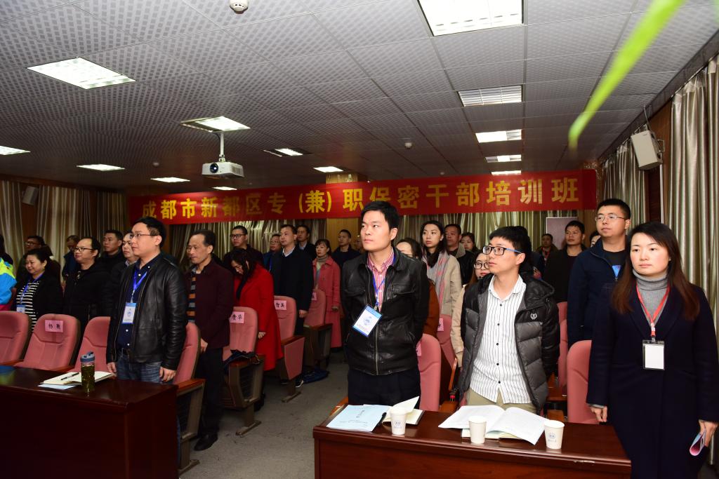副院长秦拯同志出席了培训班开班典礼,并致欢迎辞。成都市新都区国家保密局副局长杨鞭同志在开班典礼上做了开班动员及对培训要求的讲话。