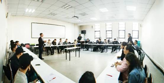 交流环节结束后,为了活跃气氛,邓先生应邀与同学们一起玩游戏。三轮过后,四位同学接受表演节目的惩罚,另外四位同学由邓先生出题进行了一次关于是否应该屏蔽父母朋友圈的模拟群面。邓先生丝毫没有拘束地与大家一起活动,气氛很热烈欢脱。