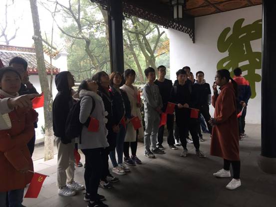 宣誓过后,大家都领取到了属于自己的一面小党旗,休息片刻准备9:00正式参观岳麓书院,支部成员们成群结队前往岳麓书院,远远望去,大家手里的党旗连城一片红色的背景,象征着我支部人心向党,团结一致的特征。