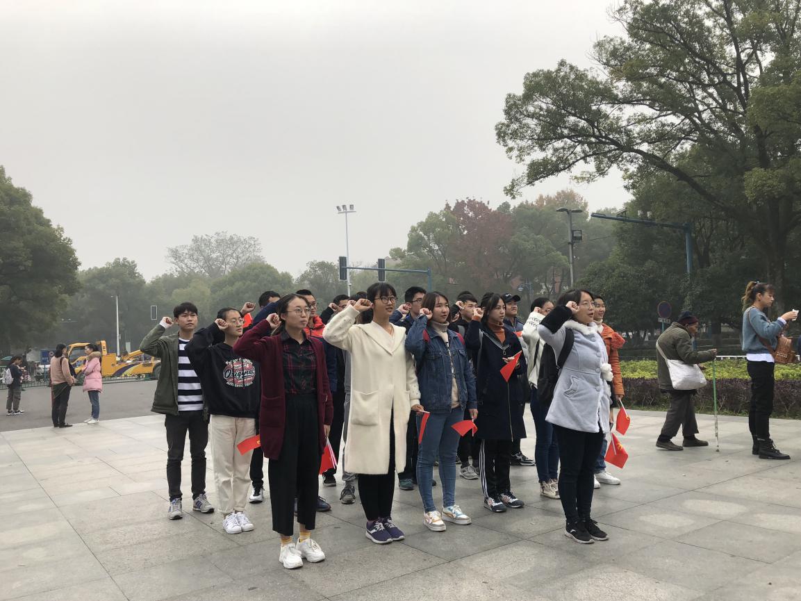 计算机科学系2016级本科生党支部在以张建民同志为领队,潘婷婷同志为副队的队伍带领下,来到了东方红广场的毛泽东雕像下,大家庄严肃穆,正气凛然。由袁纯楸同志作为领誓人,其余同志一同在毛泽东雕像下进行宣誓,重温入党誓词,大家声音嘹亮,似乎早上雾蒙蒙的长沙也被拨开了云雾一番。