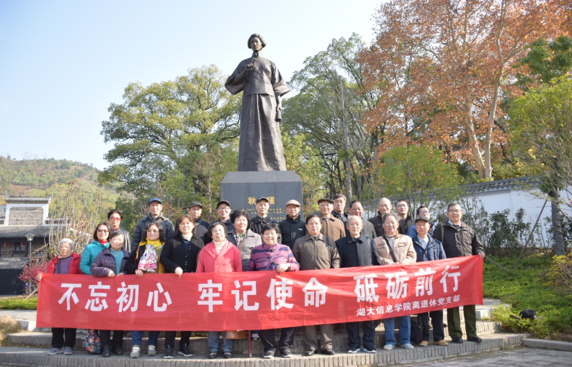 离退休党支部党员同志赴株洲秋瑾故居开展主题党日活动。活动得到学院党委书记杨忠旺和副书记向江的大力支持,并安排了一名年青在职人员随同参加。