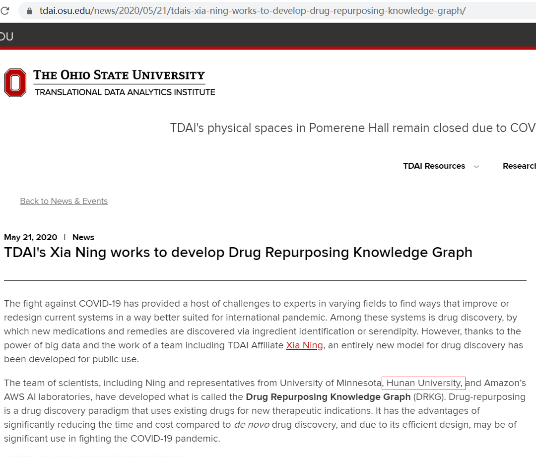 湖南大学曾湘祥教授课题组,联合亚马逊AI上海、亚马逊AI硅谷、明尼苏达大学、俄亥俄州立大学,共同构建了大规模药物重定位知识图谱(命名为DRKG)和一套机器学习工具,并将其开源给全世界研究者使用。