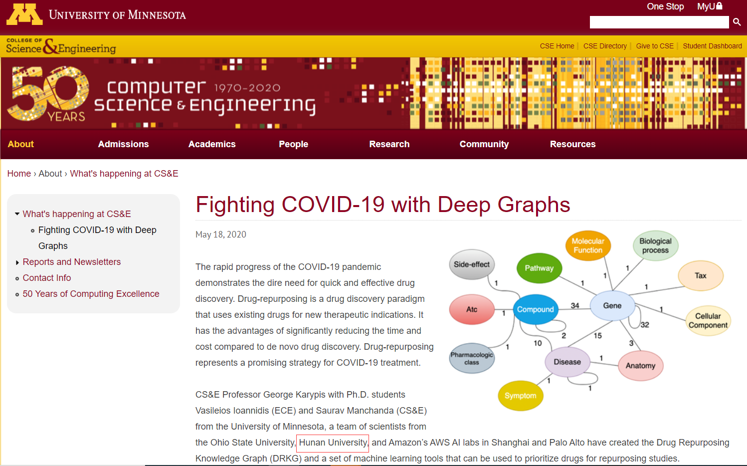 和该校George Karypis团队合作的报道