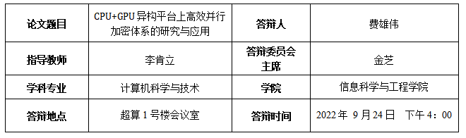 费雄伟, 李肯立, 阳王东. 基于CTR模式的GPU并行AES算法的研究与实现[J] 小型微型计算机系统,2015,36(3): 529-533.( 第一作者 CSCD核心)