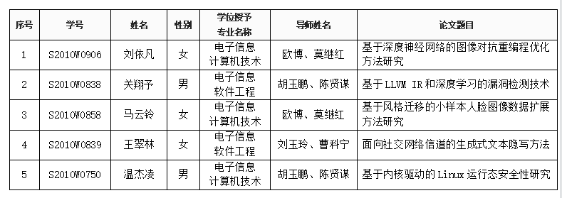 葫芦娃 (网络空间安全系)2023年5月9日硕士答辩公告
