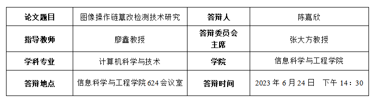 廖鑫, 薛瑶, 陈嘉欣. 基于深浅特征增强融合的社交媒体图像篡改检测[J]. 计算机学报, 2023.(复审, CCF推荐A类中文期刊, 第三作者)