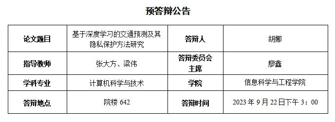 胡娜博士生预答辩公告