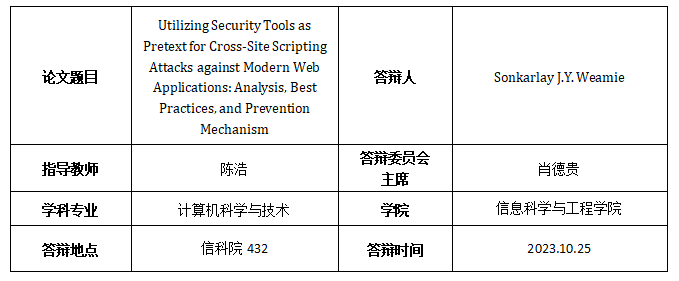 Sonkarlay J.Y. Weamie博士生预答辩公告