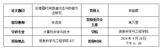 信息安全已成为维护社会和个人安全,保护财产和商业机密以及维护国家安全的重要因素。而处理器是计算机信息系统的根基,也是网络空间安全的最后一道“关闸”,如果处理器本身存在安全漏洞,则其上运行的应用程序、系统和整个网络空间的安全将无从谈起。因此,处理器中存在各种安全策略防止信息被窃取。但利用时间的隐蔽信道和侧信道可以绕过这些策略以在不允许通信的两方之间传输信息对象,且随着SpectreMeltdown等瞬态执行攻击的出现,时间信道已被证明可跨越不同安全边界的数据泄漏,促使工业界和学术界重新考虑处理器的安全性。