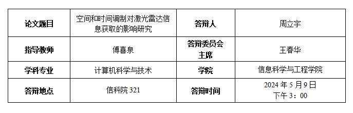 周立宇博士生答辩公告
