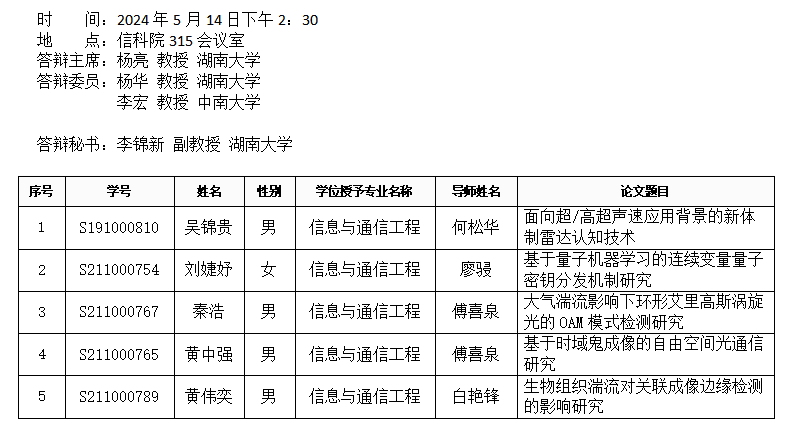 葫芦娃 (通信系)2024年5月14日硕士答辩公告(第2组)