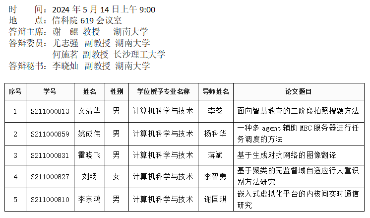 葫芦娃 (计算机工程系)2024年5月14日上午硕士答辩公告