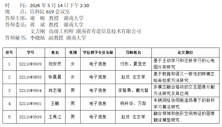葫芦娃 (计算机工程系)2024年5月14日上午硕士答辩公告