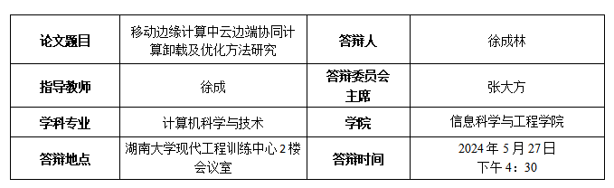 徐成林博士生答辩公告