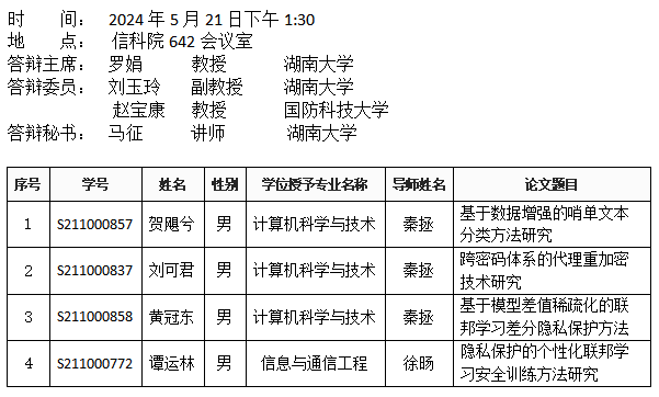 葫芦娃 (安全系)2024年5月21日硕士答辩公告