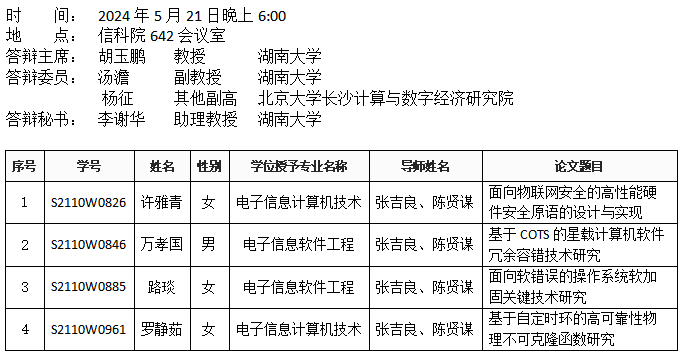 葫芦娃 (安全系)2024年5月21日硕士答辩公告