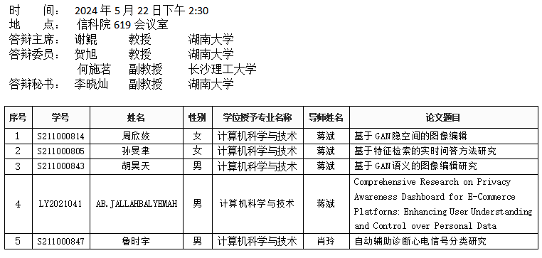 葫芦娃 (软件工程系)2024年5月22日硕士答辩公告(1)