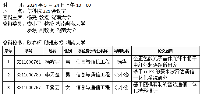 葫芦娃 (通信系)2024年5月25日硕士答辩公告