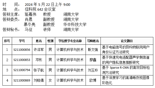 葫芦娃 (安全系)2024年5月22日硕士答辩公告