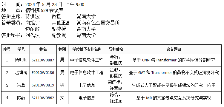 葫芦娃 (软件工程系)2024年5月23日硕士答辩公告(2)