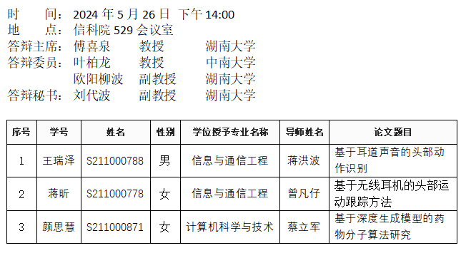 葫芦娃 (软件工程系)2024年5月26日硕士答辩公告(1)