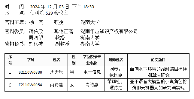 葫芦娃 (软件工程系)2024年12月03日硕士答辩公告