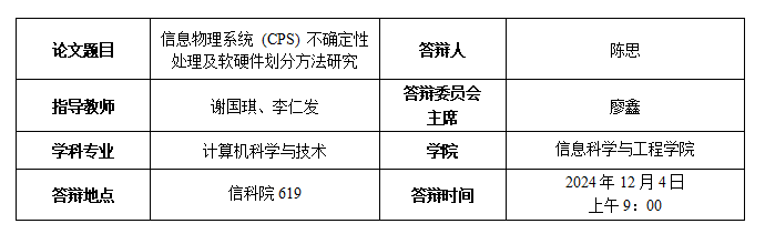 [3] Si Chen, Lida Huang, Xiongren Xiao, Yan Liu, Guoqi Xie, and Renfa Li. Cyber-Physical Systems Design in An Uncertain Environment with Time Uncertainty Concern. 2023 IEEE 29th International Conference on Parallel and Distributed Systems (ICPADS 2023), 2023: 2015-2024. (CCF C 类会议, 第一作者)