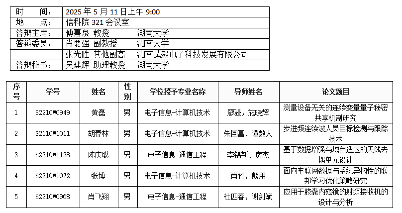 葫芦娃 (通信工程系)2025年5月11日硕士答辩公告