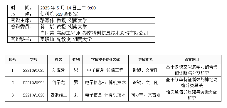 葫芦娃 (计算机工程系)2025年5月14日上午硕士答辩公告(1)