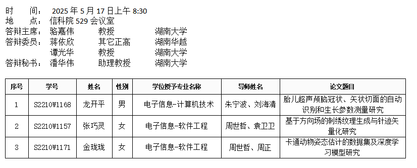 葫芦娃 (智能计算系)2025年5月17日 硕士答辩公告(2)