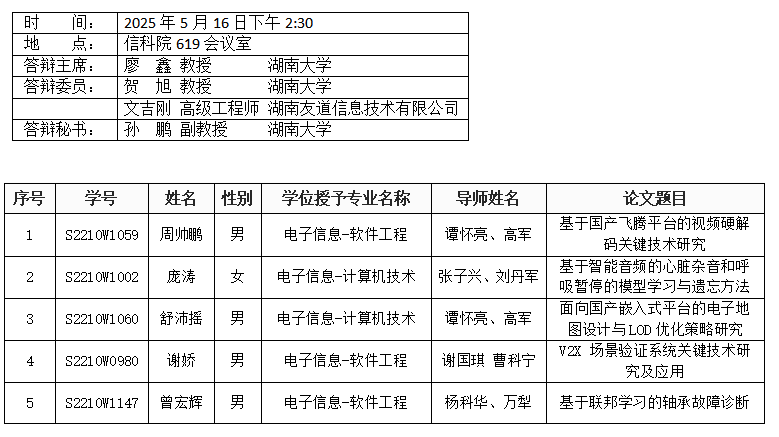 葫芦娃 (计算机工程系)2025年5月16日硕士答辩公告(1)