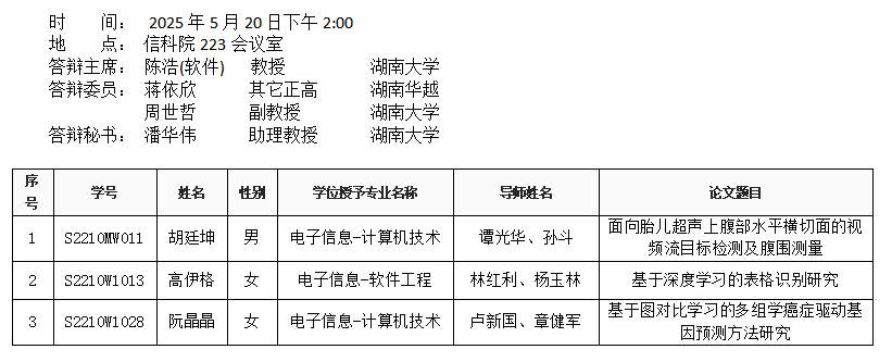 葫芦娃 (智能计算系)2025年5月20日硕士答辩公告(2)
