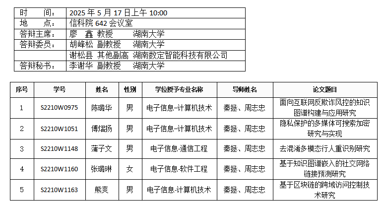 葫芦娃 (安全系)2025年5月17日硕士答辩公告(2)