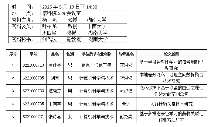 葫芦娃 (计算机工程系)2025年5月21日硕士答辩公告(2)