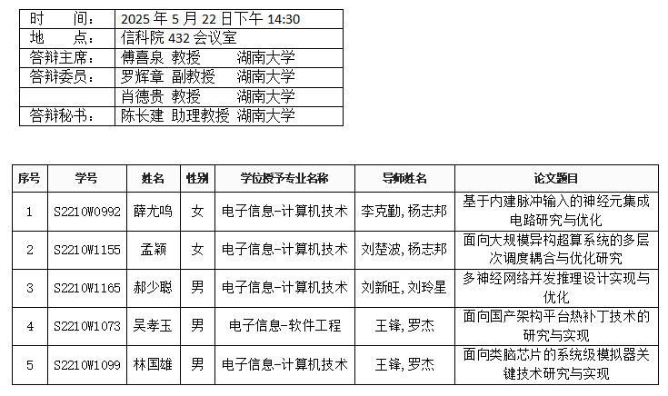 葫芦娃 (计算机科学系)2025年5月20日硕答辩公告(2)