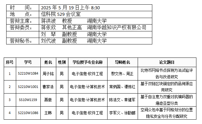 葫芦娃 (软件工程系)2025年5月19日硕士答辩公告(1)