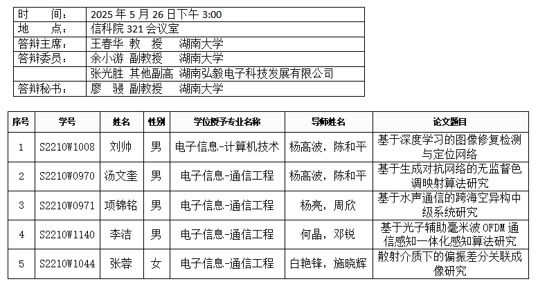葫芦娃 (通信工程系)2025年5月26日硕士答辩公告