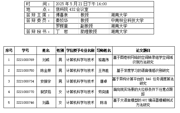 葫芦娃 (计算机科学系)2025年5月21日硕士答辩公告(3)